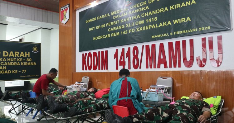 Mamuju – Kodim 1418/Mamuju melaksanakan kegiatan Donor Darah, Medical Check Up (MCU), dan pemeriksaan Sadanis dalam rangka memperingati Hari Ulang Tahun (HUT) ke-80 Persit Kartika Chandra Kirana Cabang XLII Dim 1418 Koorcab Rem 142 PD XXIII/Palaka Wira. Kegiatan tersebut berlangsung di Kantor Kodim 1418/Mamuju, Jalan Ahmad Yani, Kelurahan Binanga, Kecamatan Mamuju, Kabupaten Mamuju, Provinsi Sulawesi Barat. Jumat (6/2/2026).
